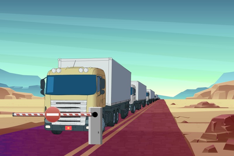 The process has not improved for the truck drivers either, Matkerim Uulu said. The Kyrgyz database often freezes, both on the Kyrgyz-Kazakh border and on the Kazakh-Russian border, and it can take days for it to come back online. This hits the trucks carrying perishable goods the hardest.