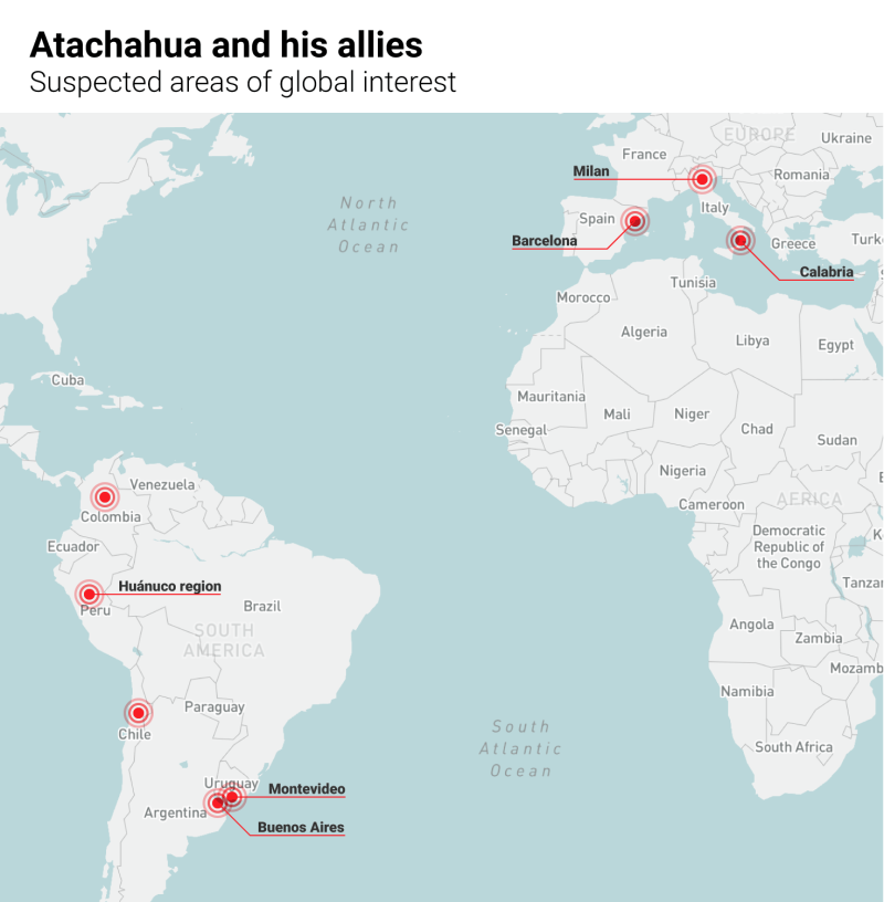 According to Argentinian investigators, in the months before he was arrested in 2020, Atachahua was preparing to send a large shipment of drugs to Spain. He appeared to know he was being tailed, but managed to stay a step ahead. Every time he arrived in Argentina through Ministro Pistarini International Airport in Buenos Aires, he would circle the facility for at least an hour to lose the officers. "He always made it," said one source close to the case.