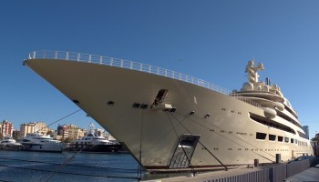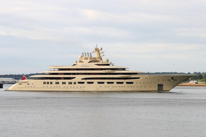 The Dilbar has two helipads and 60 cabins and is one of the largest yachts in the world.