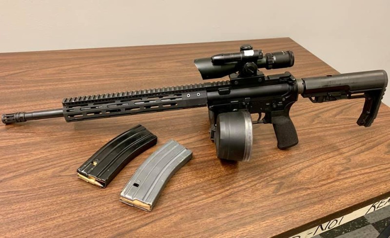 The recovered weapons include an assault rifle outfitted with a drum magazine that can hold 100 rounds of ammunition.