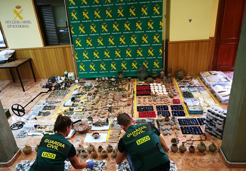 Officers searched 17 houses and seized 180,000 euros (US$205,000), forged coins, ceramics, Roman statues, helmets, urns, lamps, rings, amulets, buckles, arrowheads and spears.