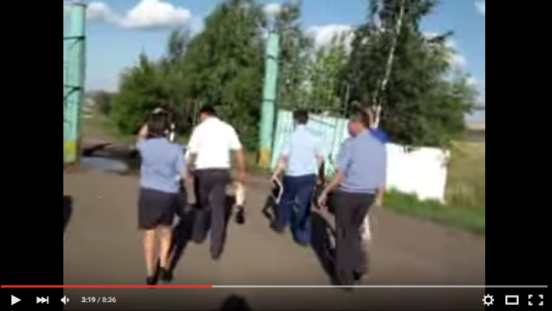 The video, from the provincial town of Apostovo in Tatarstan, shows uniformed customs officers reading formal speeches from a notepad, apparently addressed to three packages of goose-meat in a small local store.