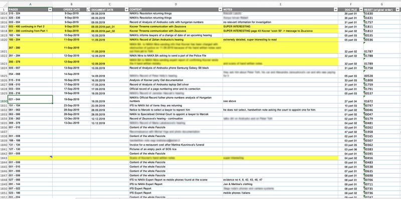 We set up in Prague, where Julia went through the massive police report, summarized each chapter in English, and created a timeline of every piece of the investigation. The result was a massive Excel spreadsheet that allowed us to rebuild the police investigation step-by-step and understand what had happened.