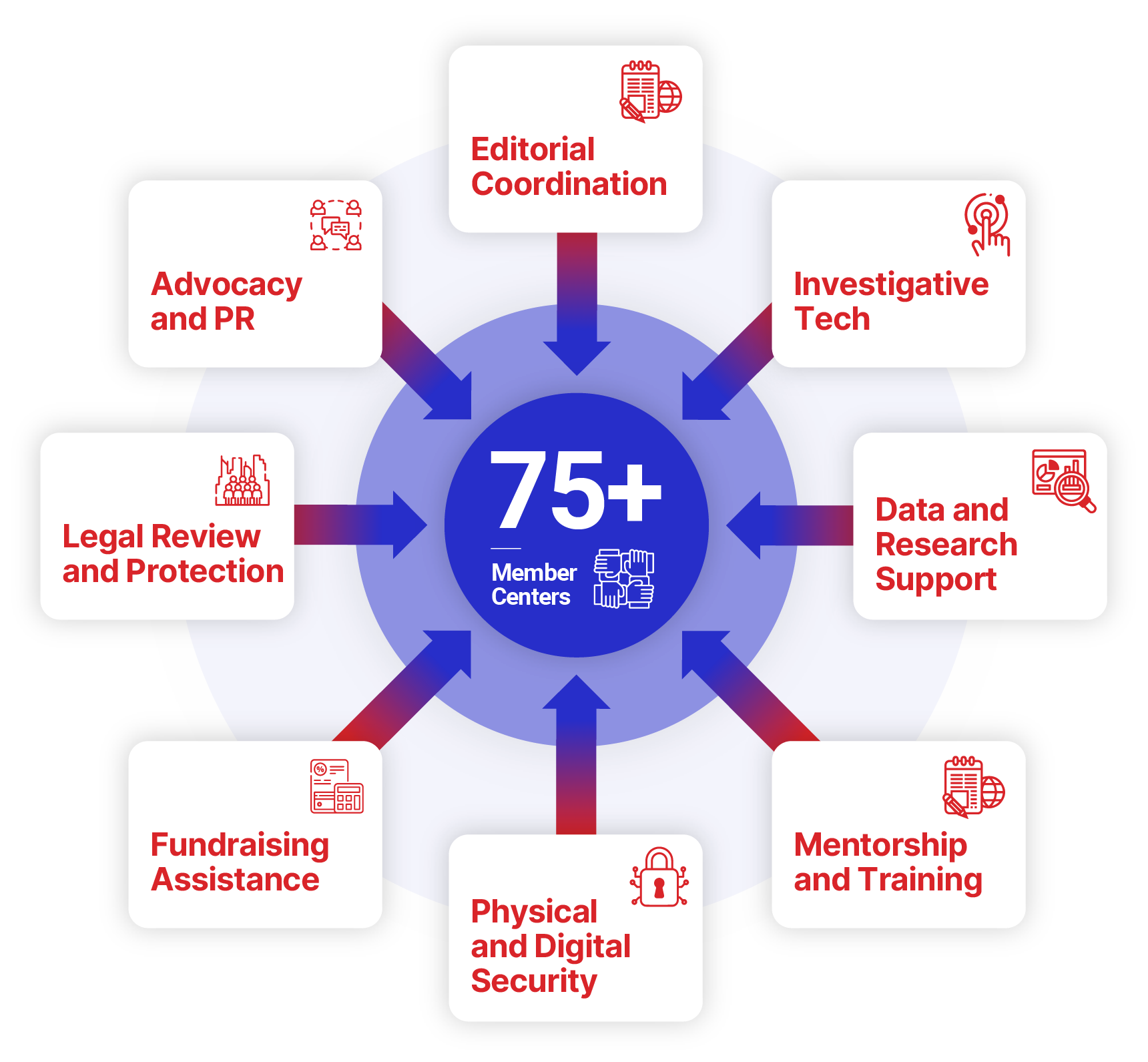 We provide a knowledge, tech, and data-rich space where journalists from around the world can safely train and collaborate.