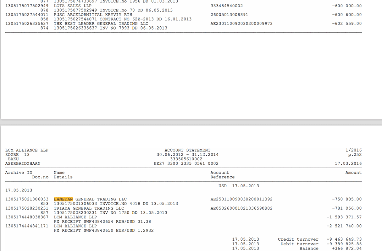 Between May and June of 2013, the Zarrab-controlled company received more than $4 million from the British-based LCM Alliance​ ​LLP,​ ​one of the core companies of the Azerbaijani Laundromat. (See: The Core Laundromat Companies)