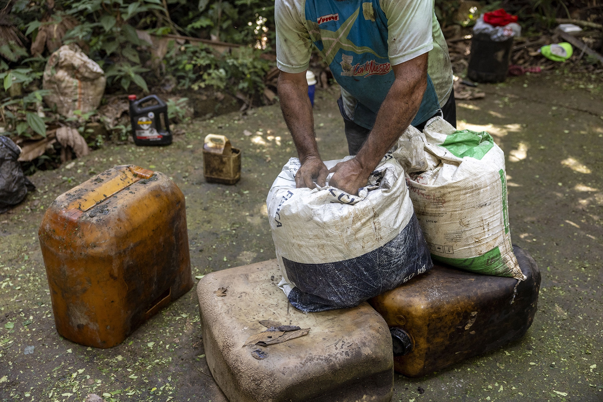 A clandestine coca processing laboratory in Colombia, within the Amazon forest.