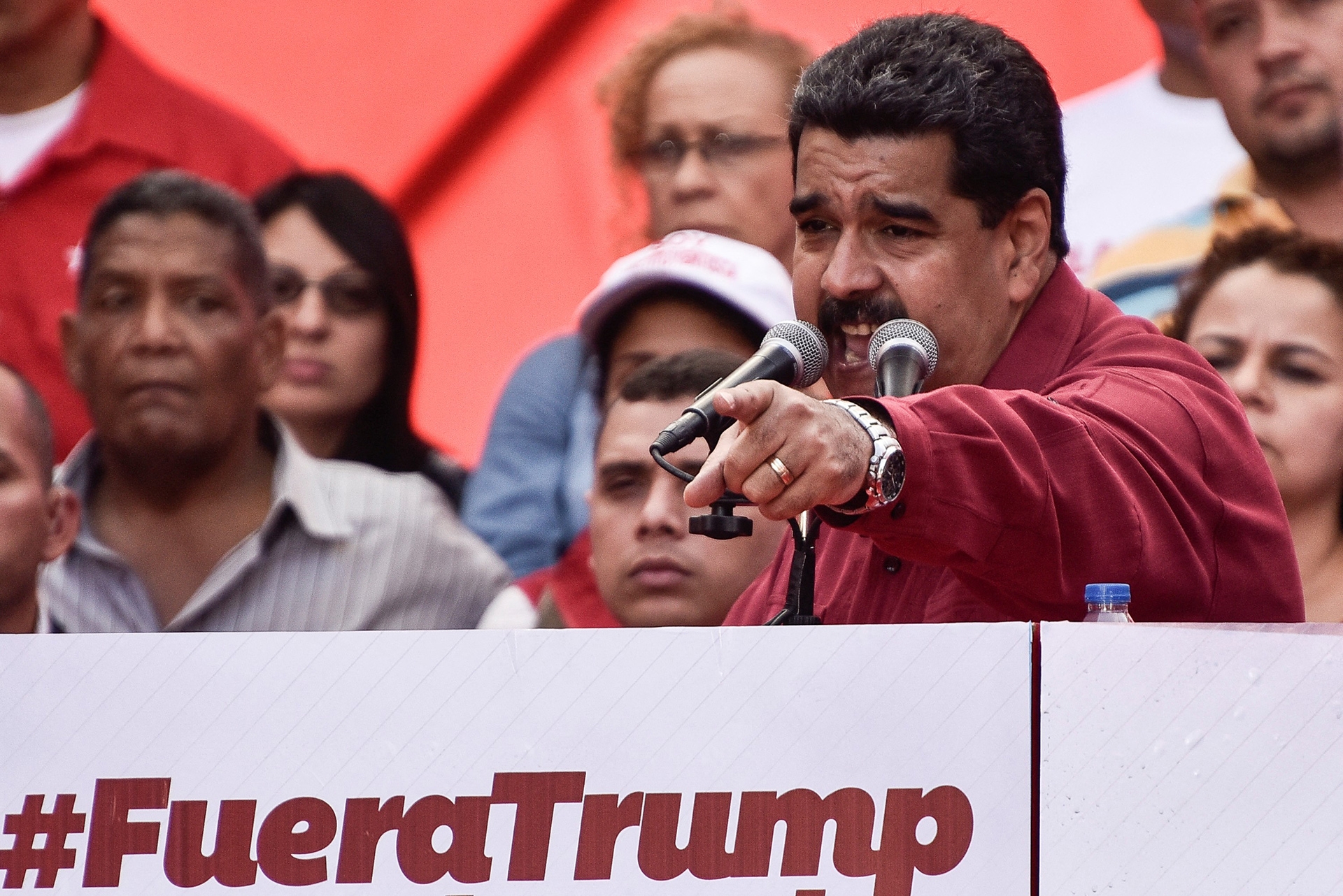 Venezuelan President Nicolás Maduro speaks during a pro-government rally opposing U.S. President Donald Trump in Caracas on August 14, 2017.