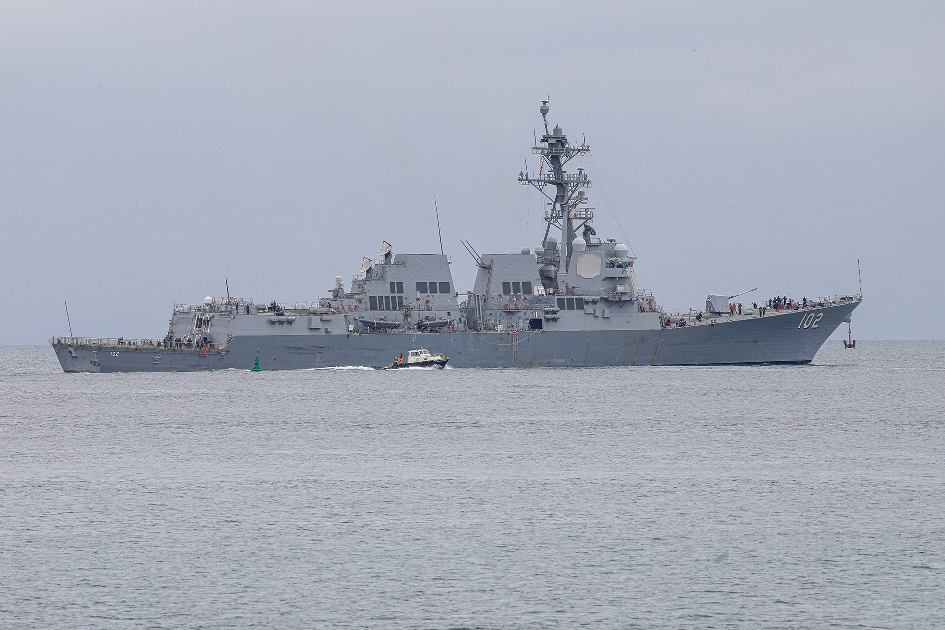 The USS Sampson (DDG-102), a U.S. Navy guided-missile destroyer, docks at the Amador International Cruise Terminal in Panama City, Panama, on September 2, 2025.