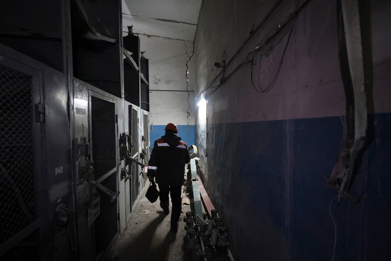 Restoration efforts underway at a power facility damaged by a Russian attack in Kharkiv on February 20, 2026.