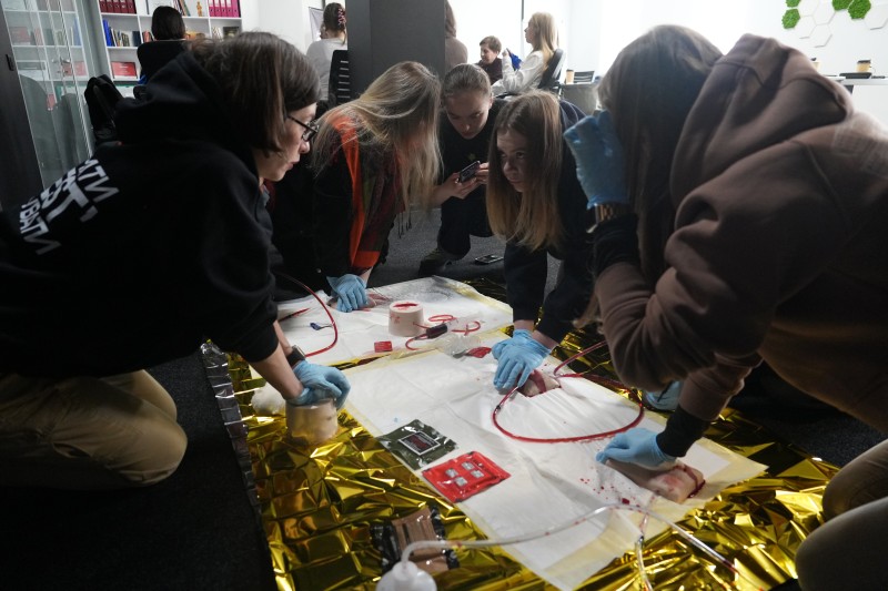 Journalists at Slidstvo.info take part in a training on emergency medical procedures.