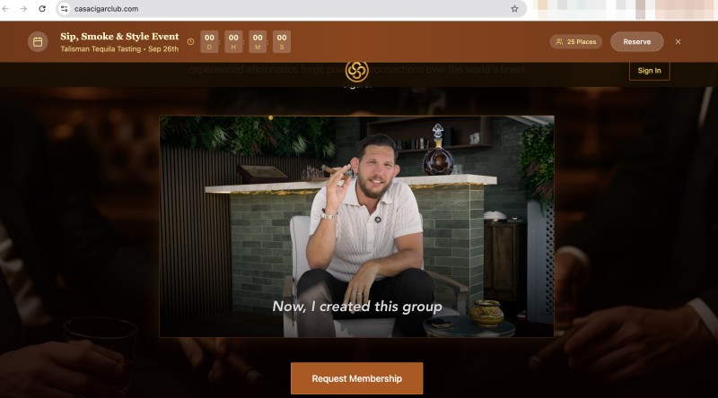 Luke Barnatt presents a video on the homepage of the Casa Cigar Connoisseurs Club website.