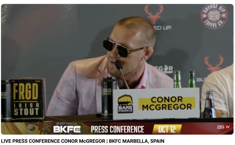 Irish MMA fighter Conor McGregor at a press conference in Marbella ahead of the Bare Knuckle Fighting Championship event.