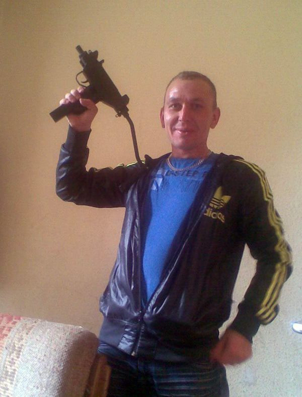 Gintas Vengalis, who was convicted of working for the Russians in 2015, holding a machine gun. Credit: Sunday World