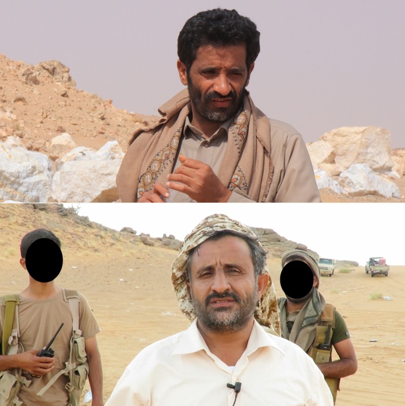 From top to bottom, Ali Abdallah Saleh Ruqaisian and Abdullah Ahmed Ali Shawdaq, tribal quarry owners who say they “own the mountains” in Marib province, Yemen.