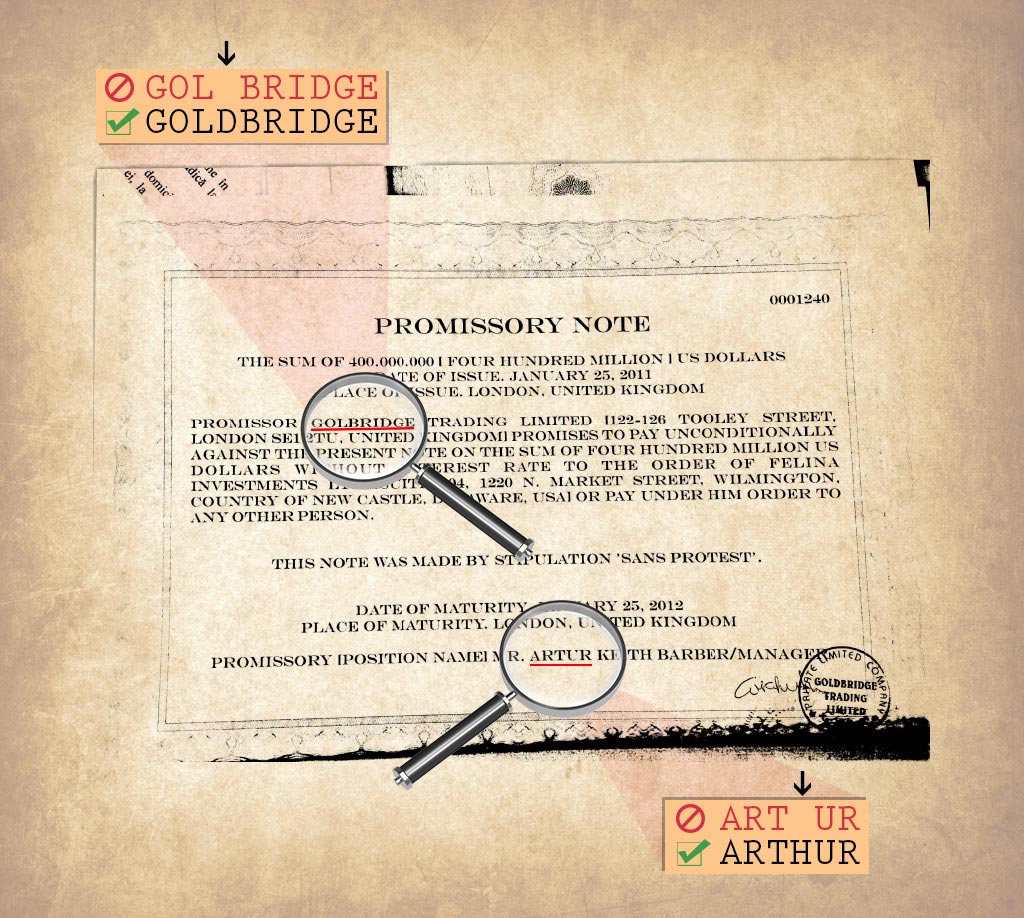 All the promissory notes used to siphon more than US$ 20 billion from Russia were forged in the same way.