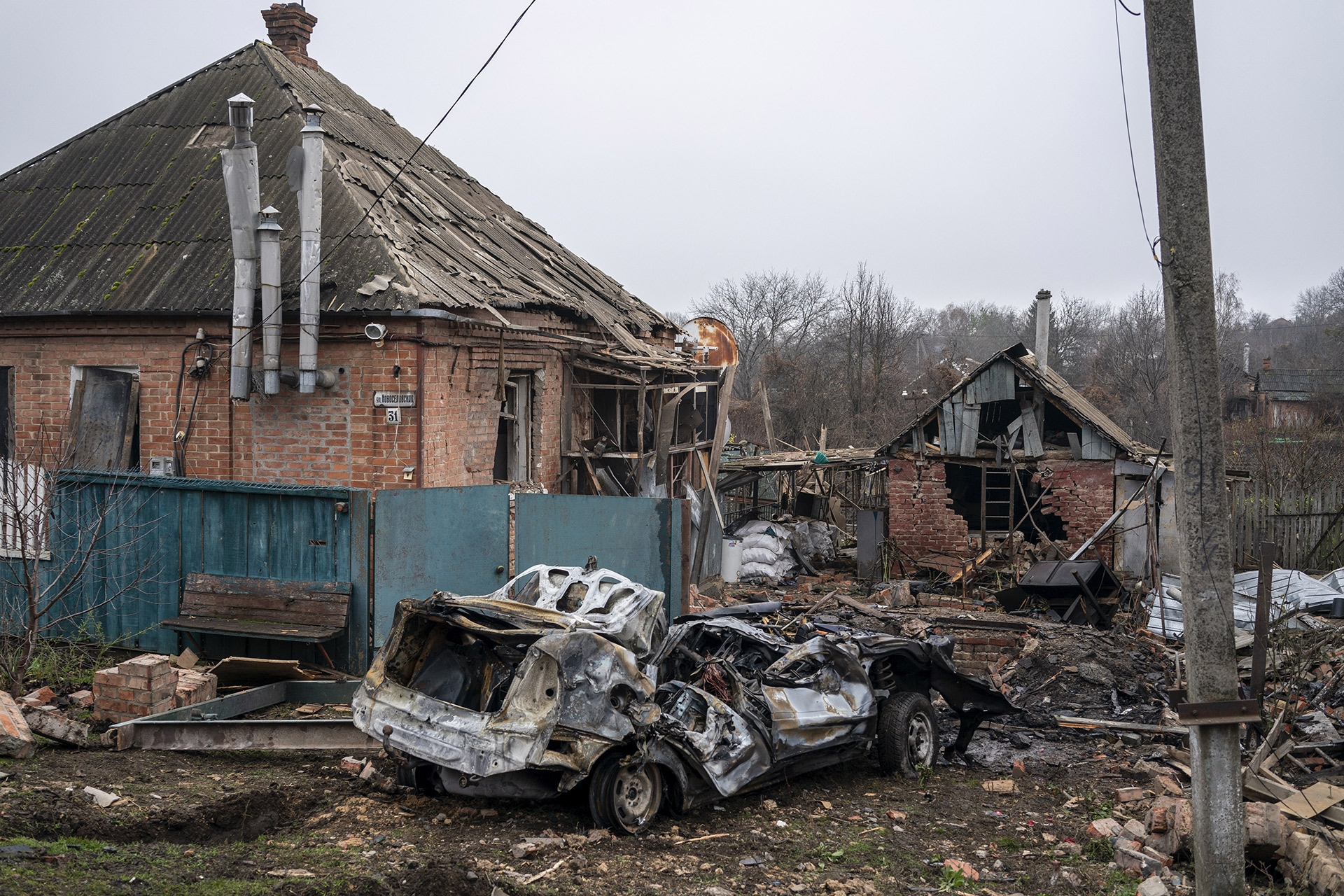 The aftermath of Geran-2 drone strikes in a residential area of Sloviansk, Ukraine, on November 27, 2025.