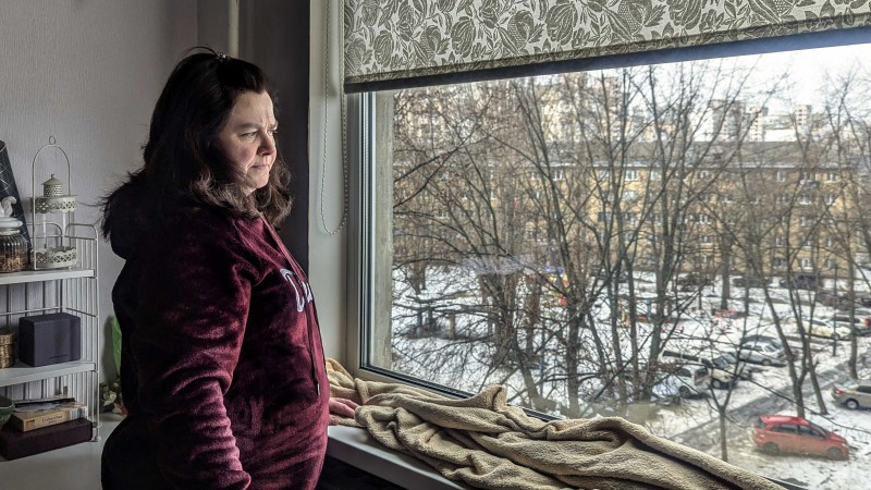 Meanwhile, on the Left Bank of the city, Tetiana Kavinova is still freezing in the icy cold of her apartment.