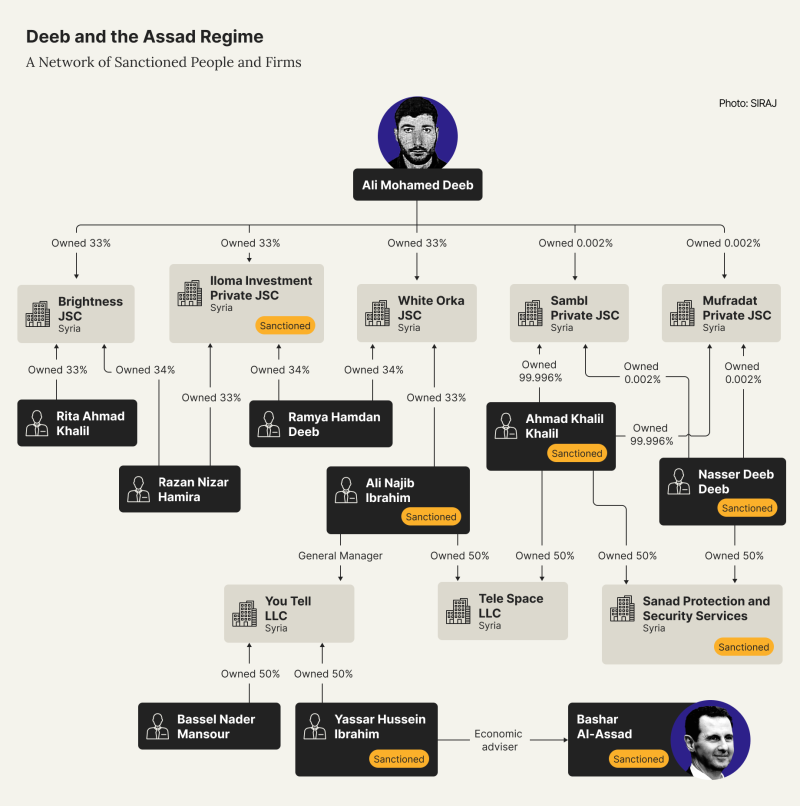 Syrian corporate records show that Deeb held stakes in companies with fellow shareholders sanctioned by the EU for supporting and benefiting from the Assad regime.
