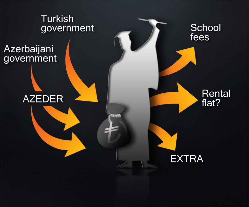 The Azerbaijani government’s aid package includes a monthly stipend of US$ 100 plus two round-trip tickets home per year.