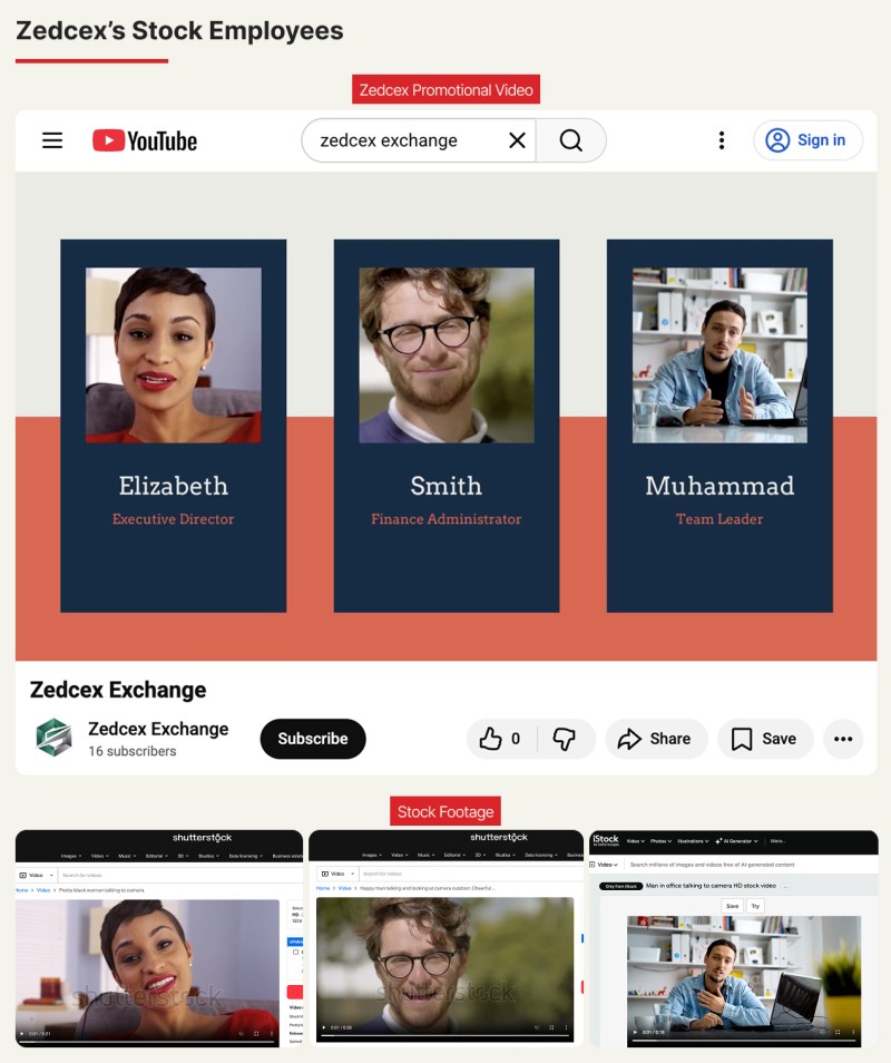 The purported CEO of the Zedcex cryptocurrency exchange, Elizabeth Newman, is portrayed in a promotional video using stock footage of a "pretty black woman talking to the camera," reporters found. Other supposed employees are also portrayed using stock footage.