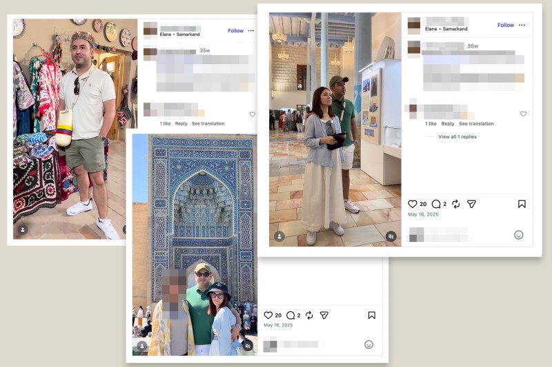 An Instagram video posted by a friend of Ostanova’s shows her and Guerrero taking in the sights together in the historic Uzbek city of Samarkand. Ostanova has also “liked” numerous Instagram posts of Unicos Cars, the South Korean car dealership that provides Guerrero’s phone number as a contact. They are also both listed as representatives of the same South Korean beauty products firm.