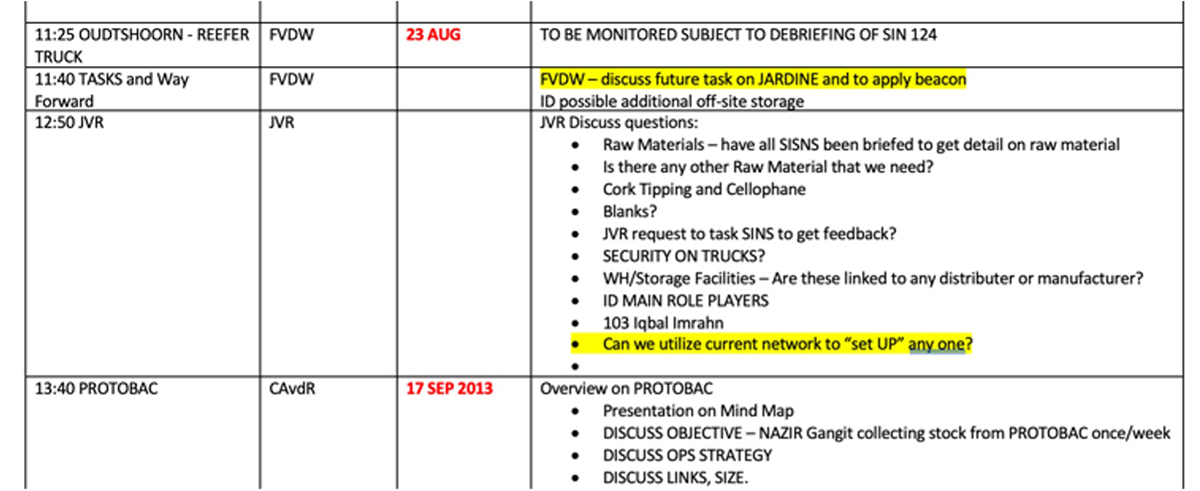The leaked documents include an outline for an operation aiming to “cause a substantial rift between the distributors ... through means of jealousy or false reports.” Minutes from a meeting between FSS and BAT South Africa record the question: “Can we utilise current network to ‘set up’ any one?”