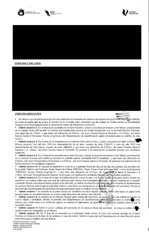 The files indicate that investigators found only “fragments” of fingerprints, but details about them are censored. More information was revealed in a separate investigation by Laura Borbolla, former special prosecutor for crimes committed against freedom of expression. Borbolla revealed that local investigators had ruined fingerprints. She also said she managed to recover two prints from the crime scene, but was unable to find a person who matched them — including the main suspect identified by Veracruz investigators, whose fingerprints were never found at the scene.