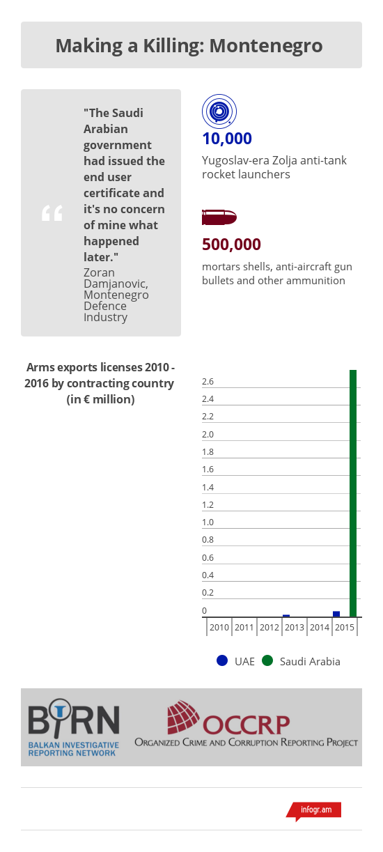 Since August 2015, Montenegro has exported 250 tons of ammunition and 10,000 anti-tank systems to Saudi Arabia, which has no history of buying or using second-hand Eastern European and Soviet-style equipment.