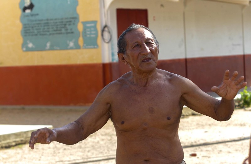 Simón Bastidas, the chief of the Mapoyo people, is dubious about the company’s claims. At 77, he still carries 40-kilo bags on his bare back with extraordinary agility. He meets reporters at his house at the entrance of the 663-person community of El Palomo, located about 200 meters from Route 12.