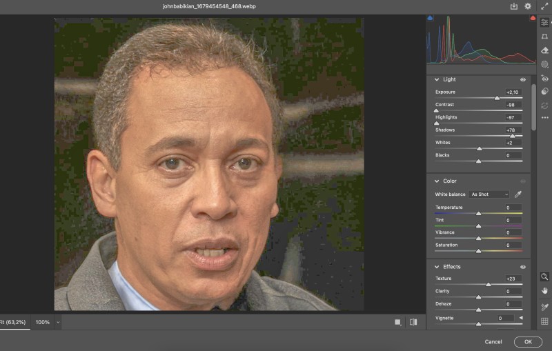 One of various digitally-manipulated photos circulating online purporting to be a person named John Babikian. Photo analysis shows that the background and subject are at different resolutions, inconsistencies that are common to images generated or manipulated using AI tools.