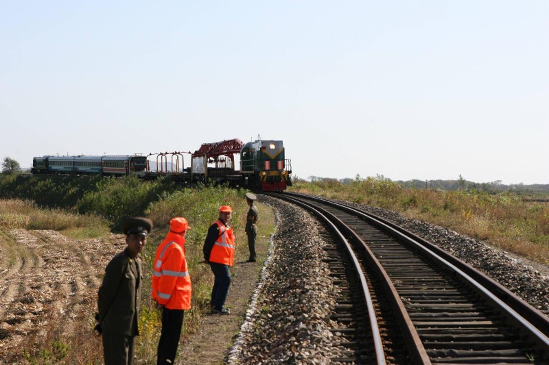 The launch of a restored section of the Khasan–Rajin rail connection in North Korea in 2008.