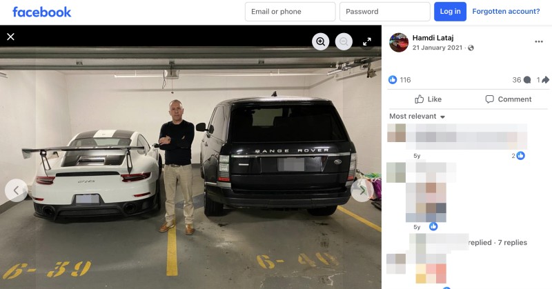 Hamdi Lataj’s facebook post posing next two high-end vehicles.