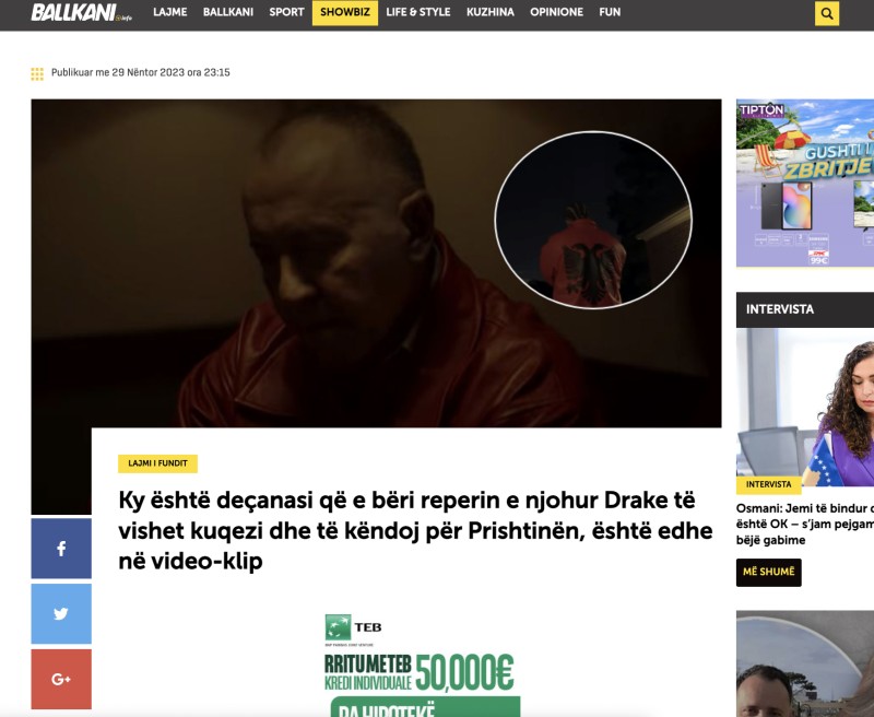 The Albanian media outlet Balkani published an article about Hamdi Lataj in Drake's Polar Opposites video.