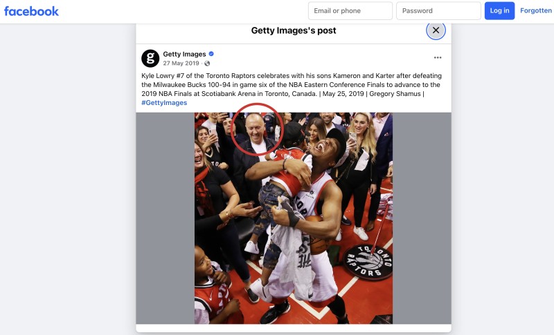 Hamdi Lataj (circled) seen on a Getty images’ Facebook post showing a Toronto Raptors game on May 25, 2019.