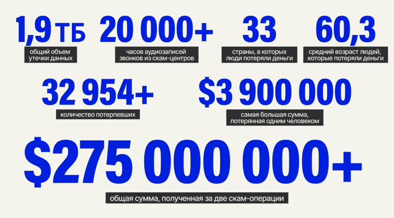 В утечку попали внутренние документы, данные о денежных потоках, записи с экранов компьютеров скамеров и свыше 20 тысяч часов аудиозаписей телефонных звонков. Репортеры услышали, как скамеры втираются в доверие к жертвам, чтобы затем разрушить их жизни.