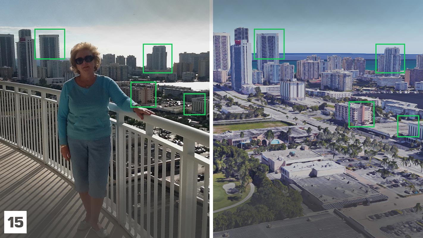 Похоже, что две из них были сделаны на одной из высоток комплекса Duo Hallandale — это видно из сравнения снимков с 3D-изображениями из Google Maps.