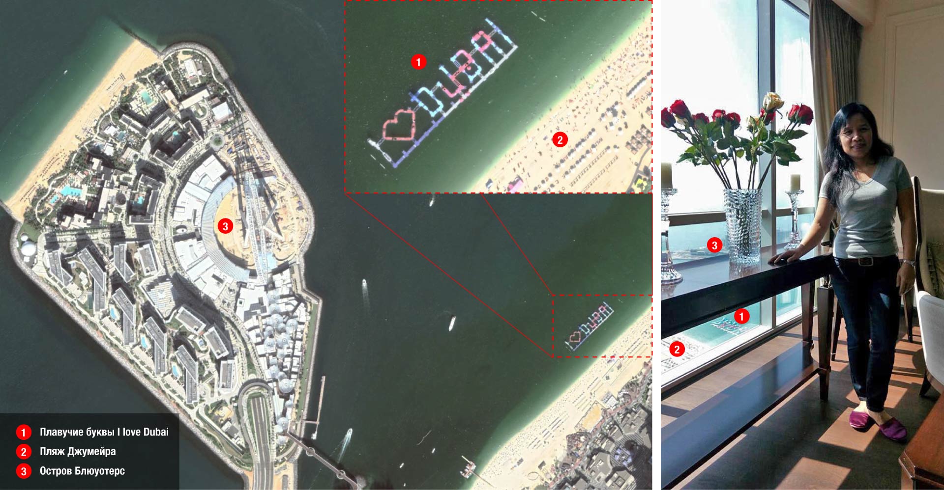Еще одно доказательство – пост в Instagram с геотегом ’Al Fattan Marine Towers’. Здесь такое же панорамное окно и похожий вид на пляж и аквапарк: